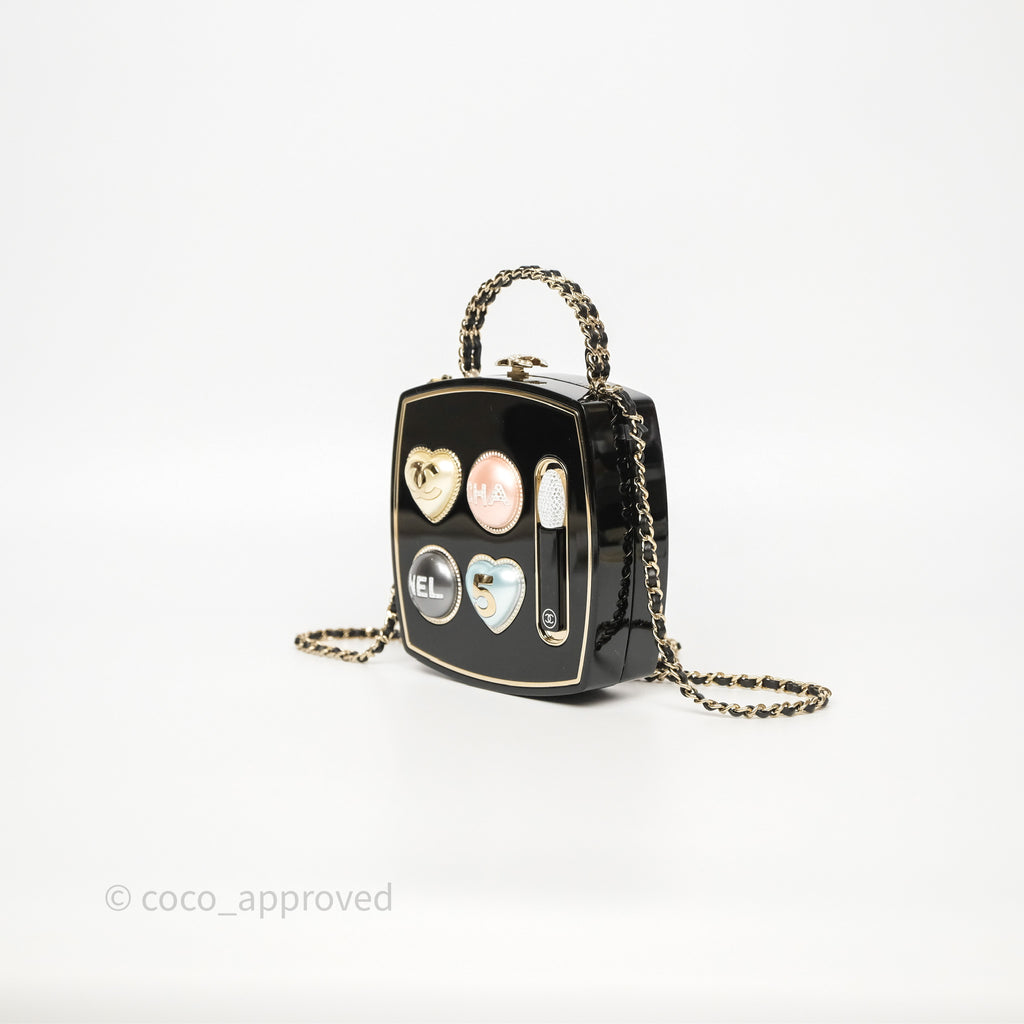 Chanel Makeup Palette Minaudiere Black Plexi Strass Gold Hardware