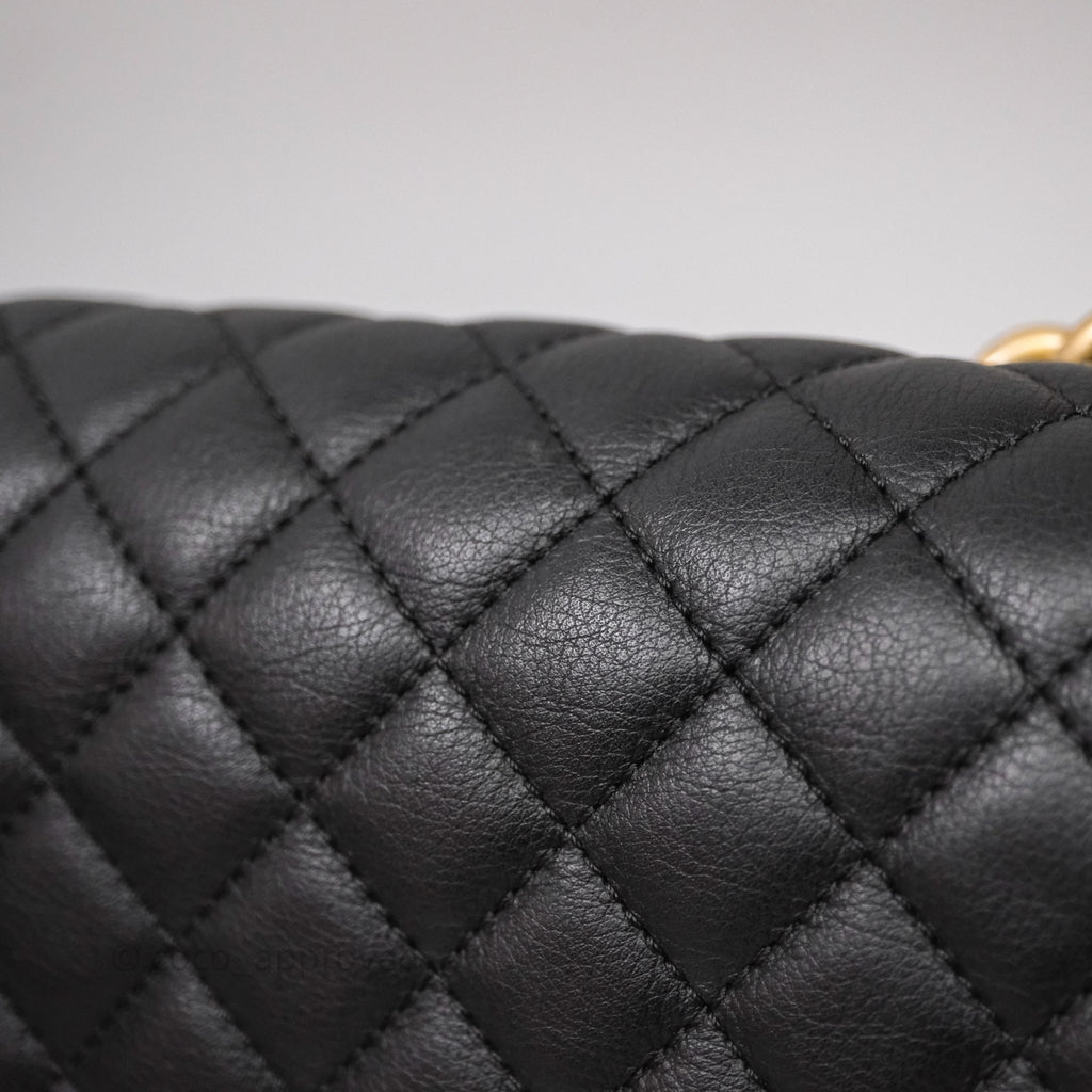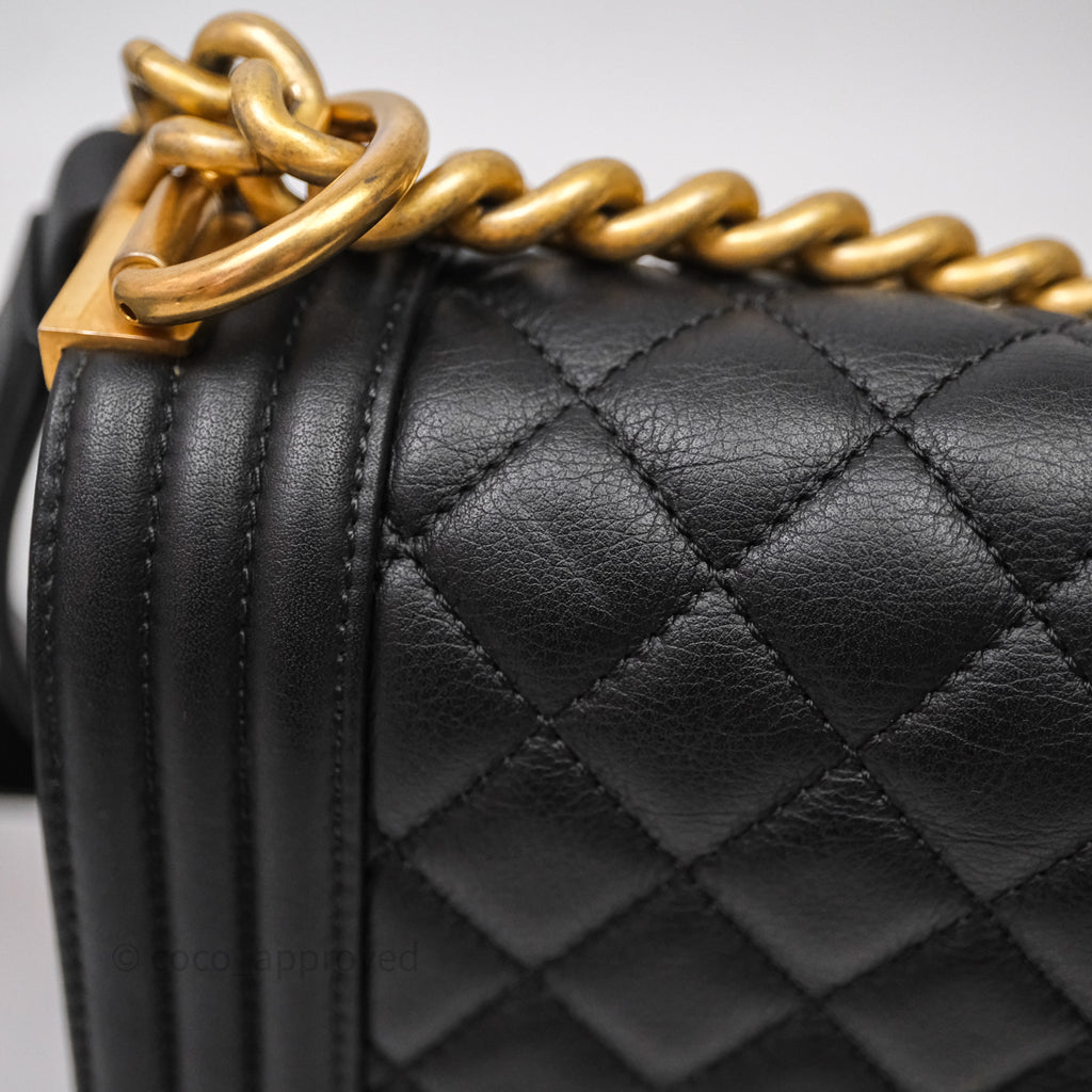 Chanel Medium Boy Quilted Black Calfskin Aged Gold Hardware