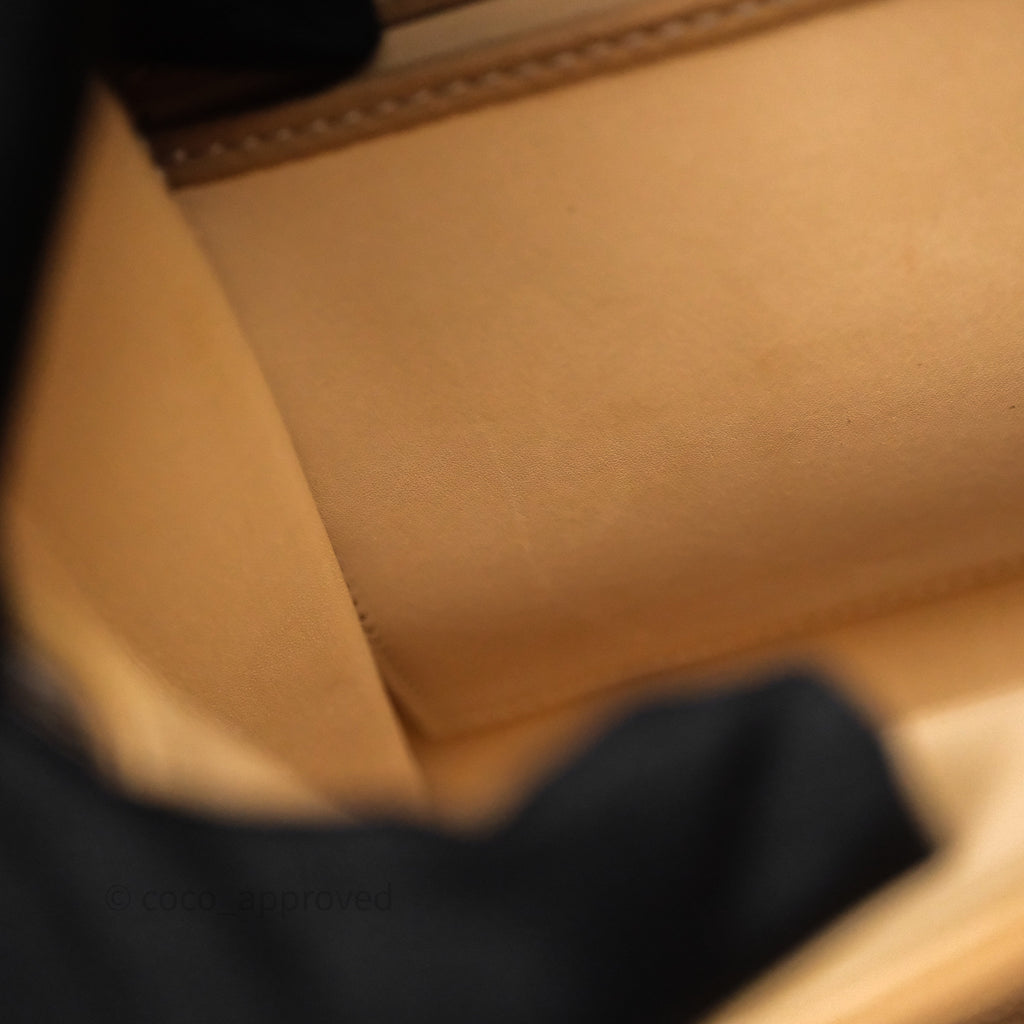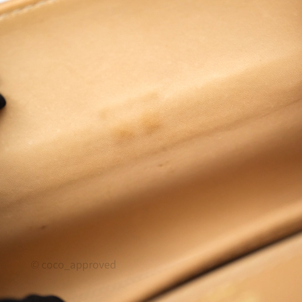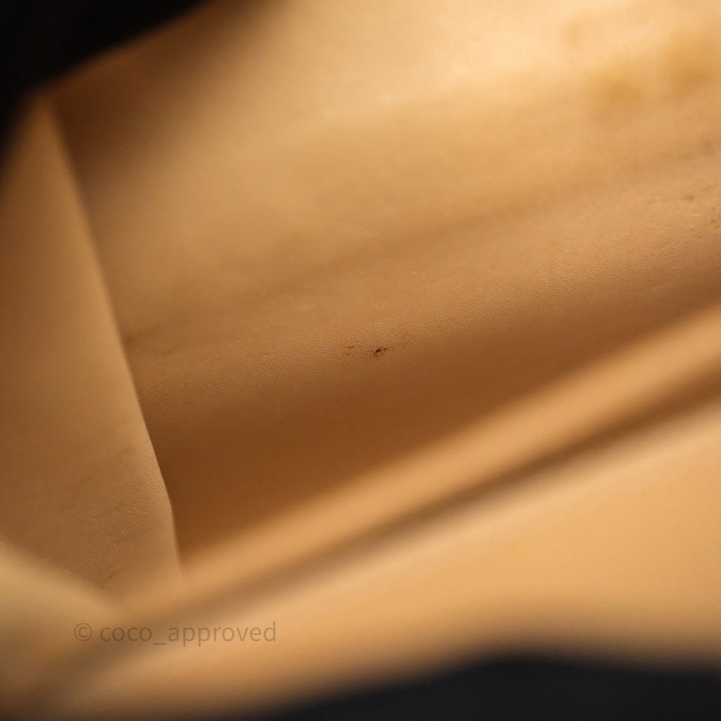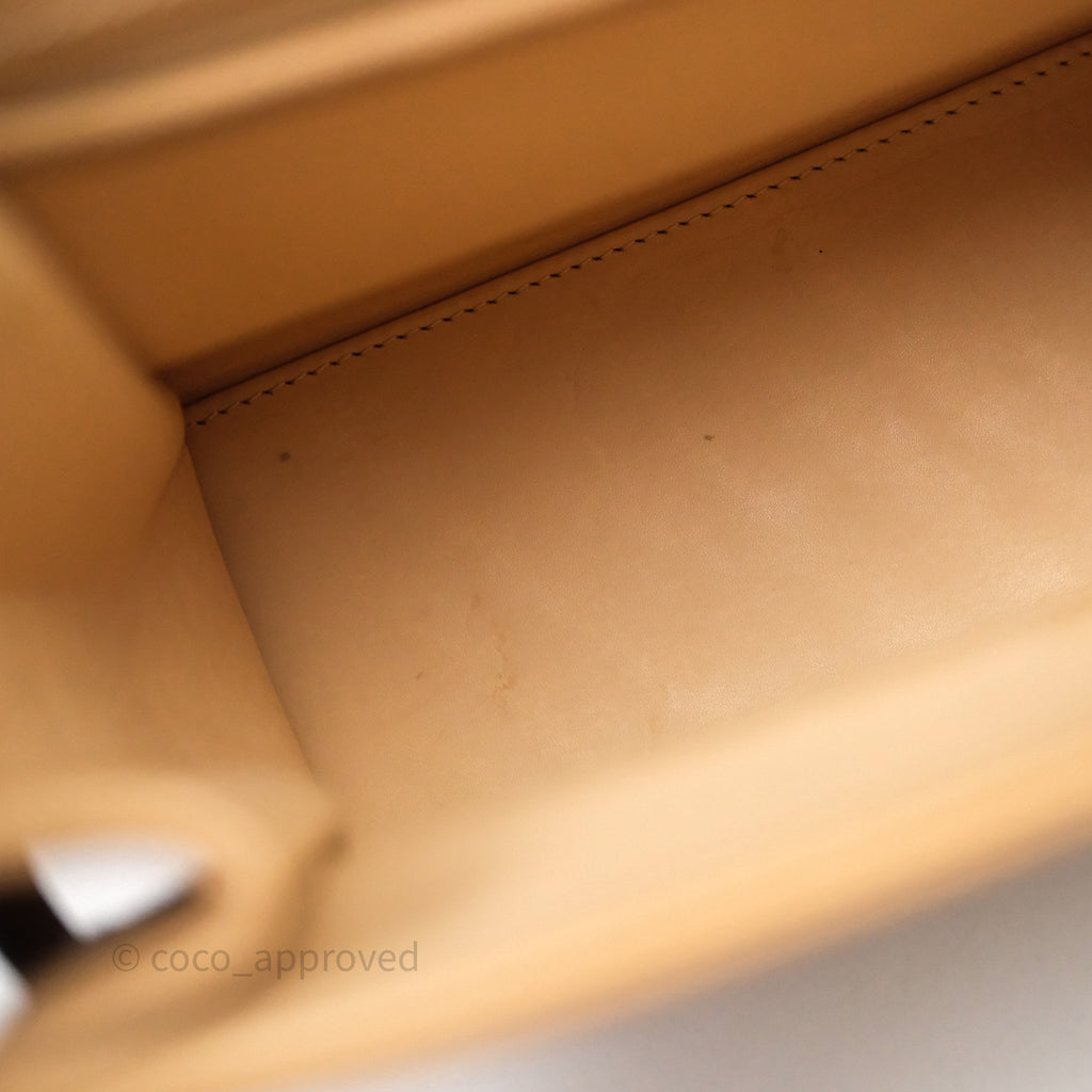 9/10 excellent condition. Marks in interior. Hairlines on hardware and in interior. Rubbing on rims, strap and handle. Dent in interior.