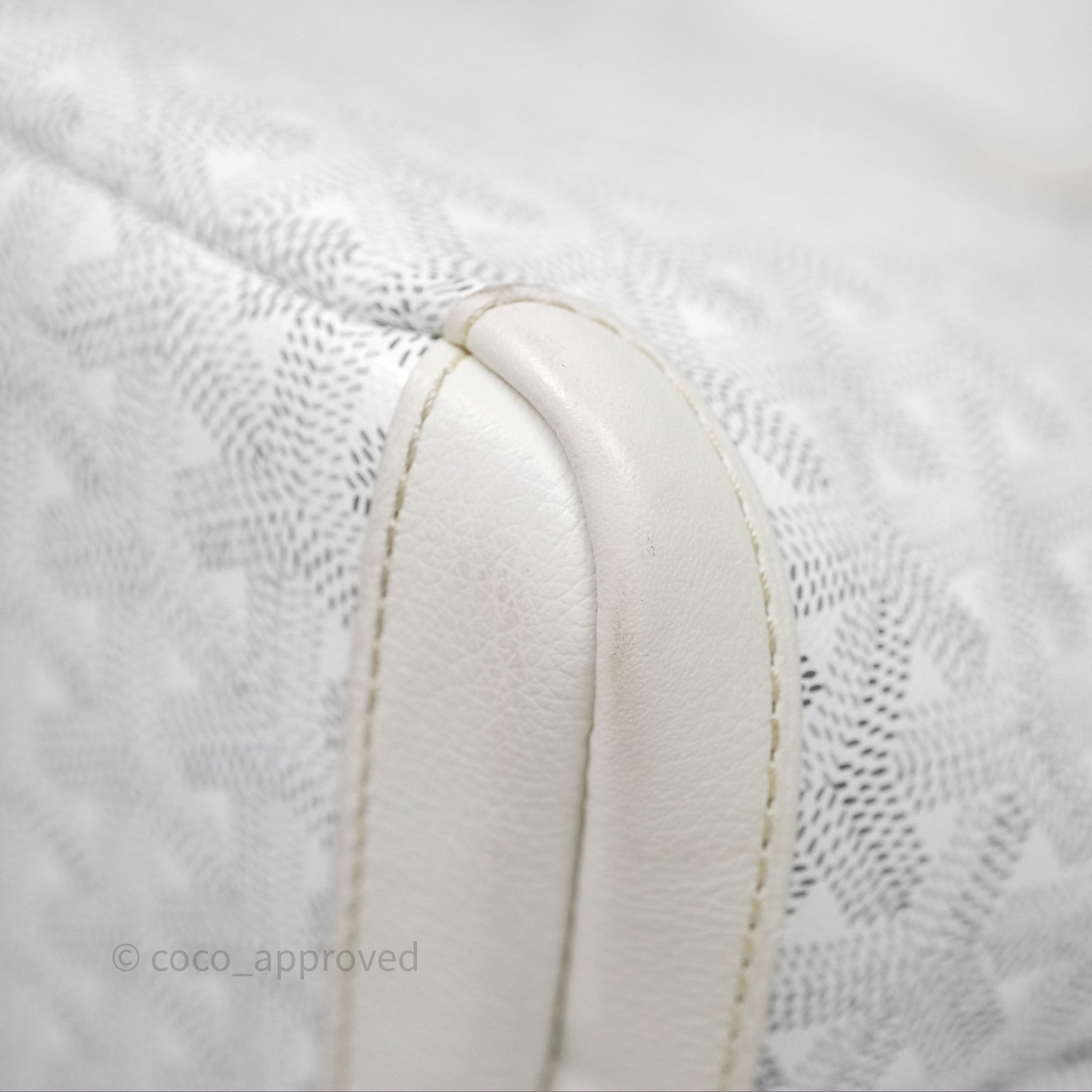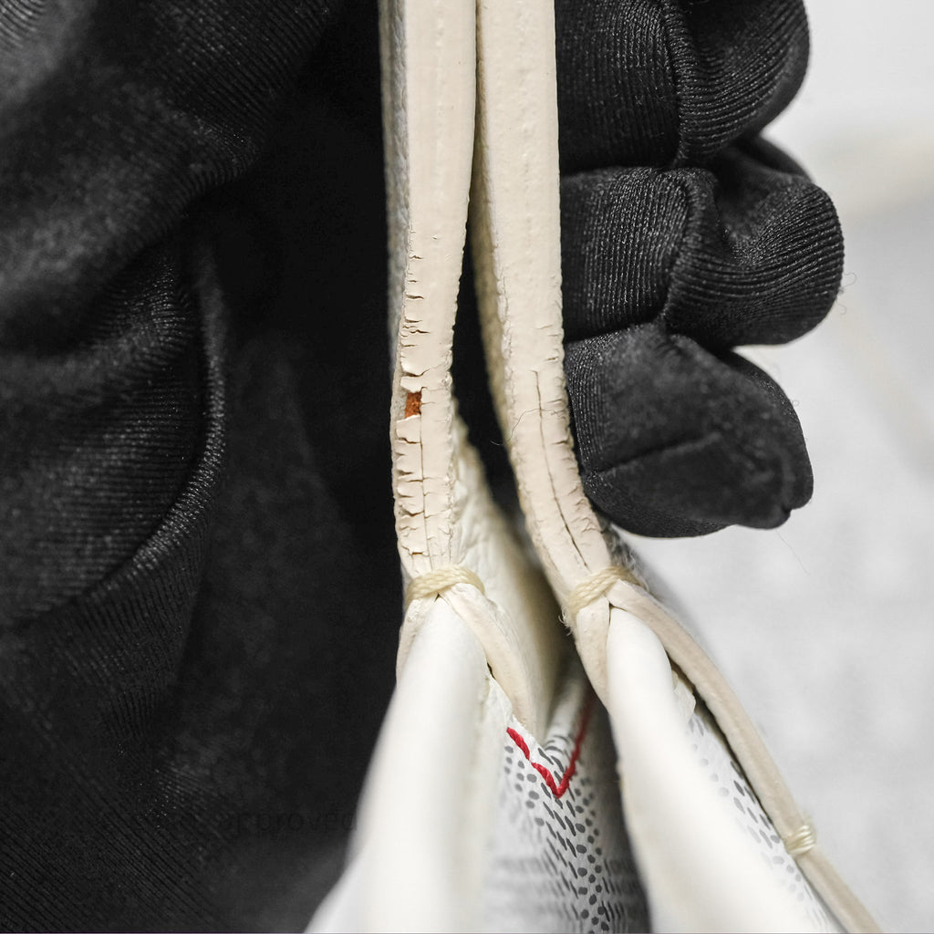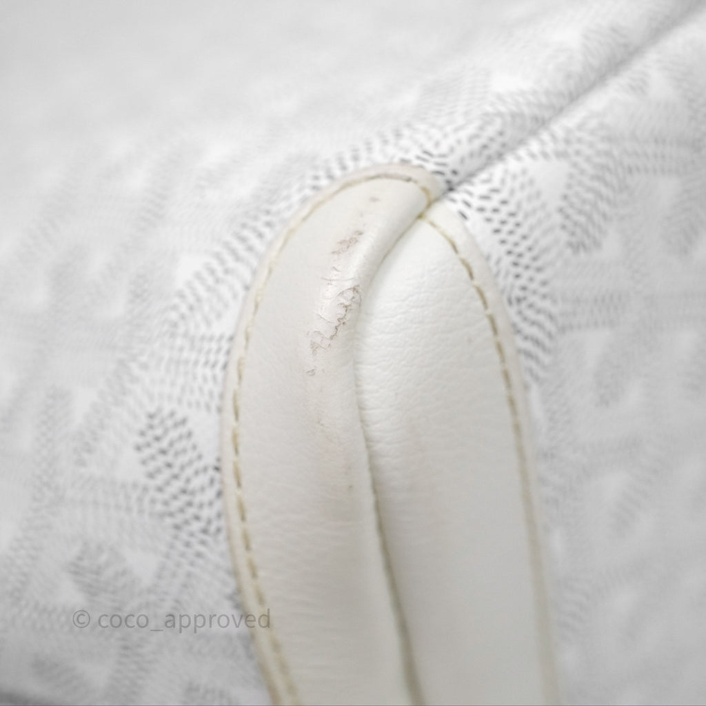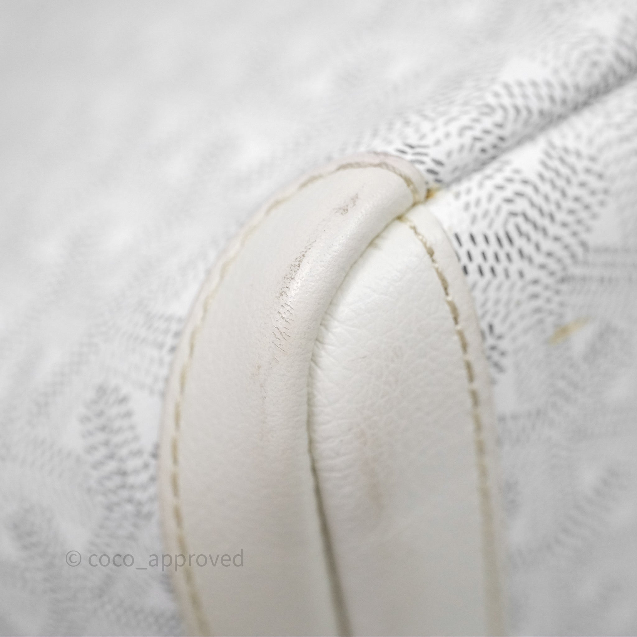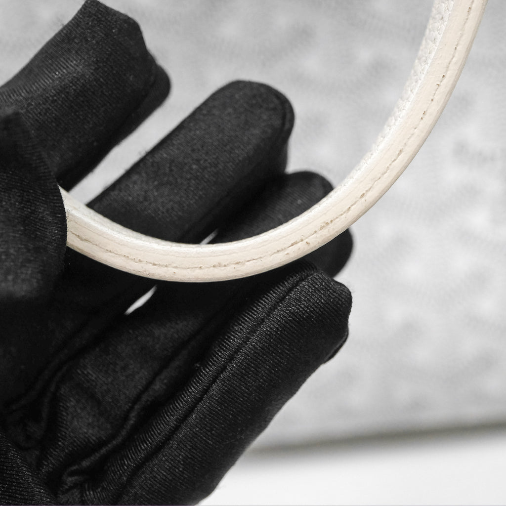 9/10 excellent condition. Rubbing on rims. Marks in interior. Yellowing on rims and stitches. Sign of use on handle.