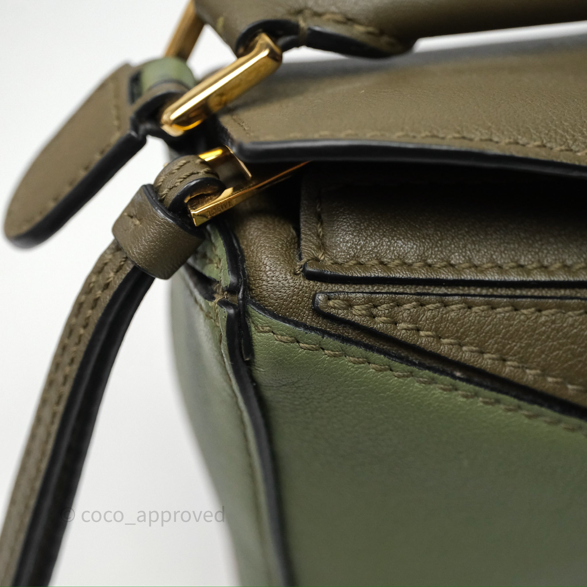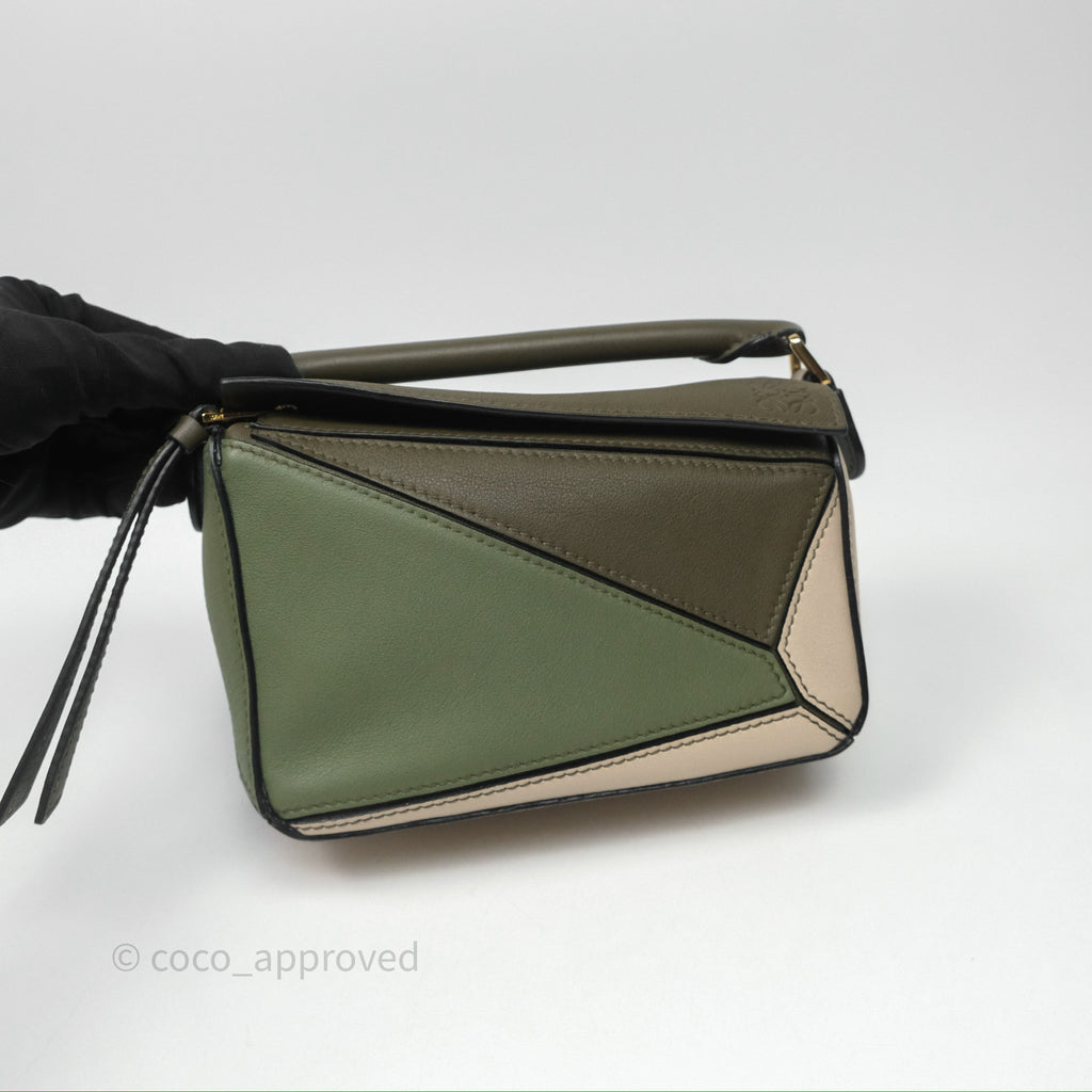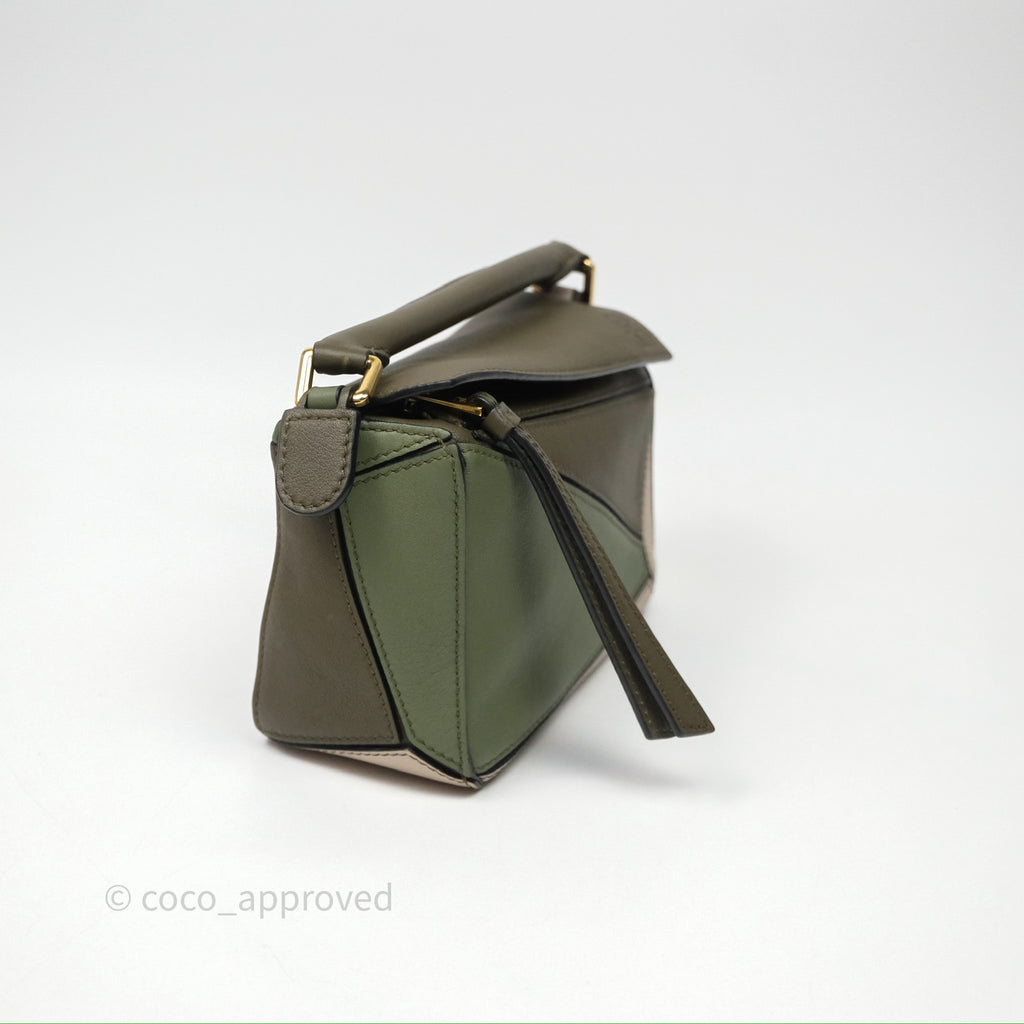 Loewe Mini Puzzle Bag Green Calfskin Gold Hardware
