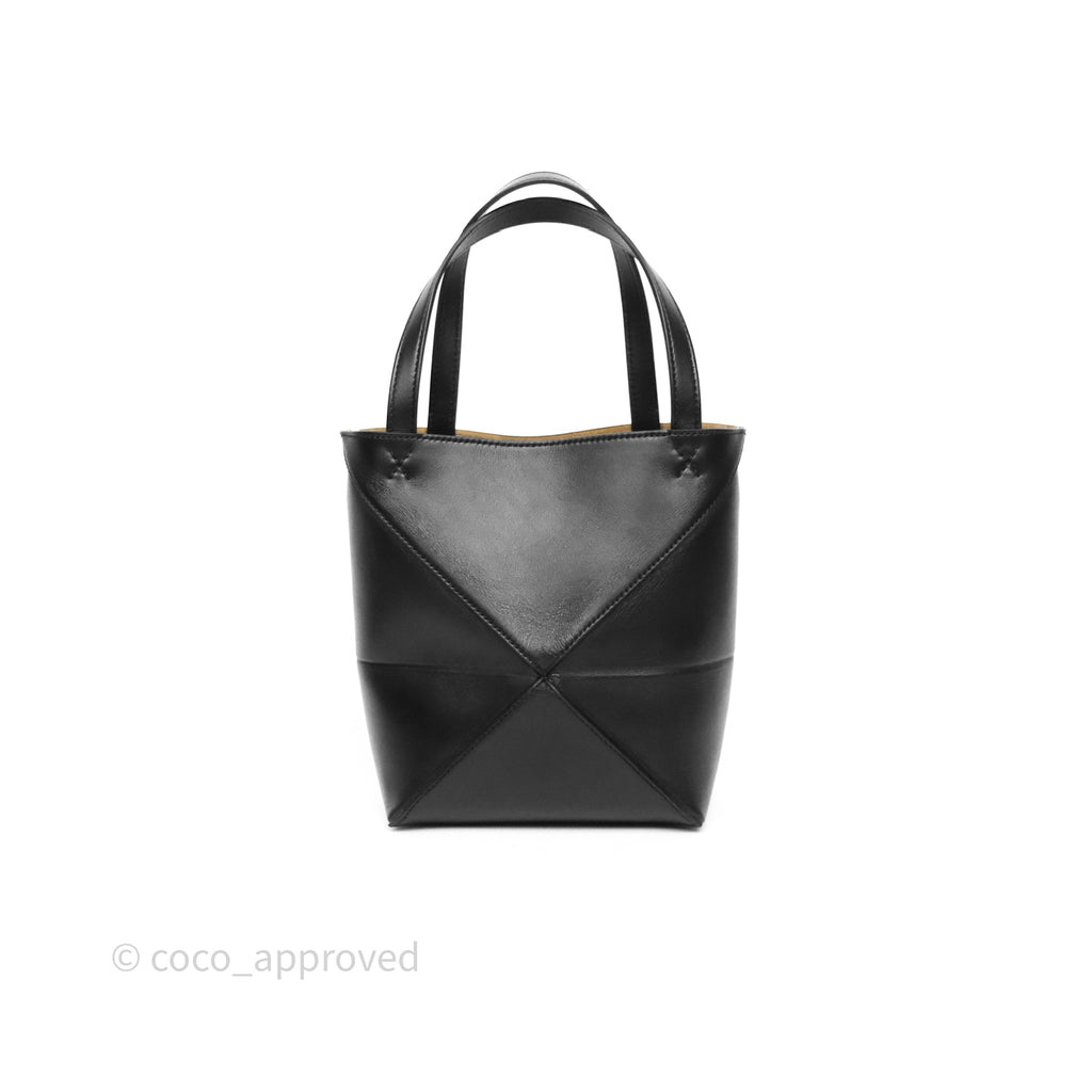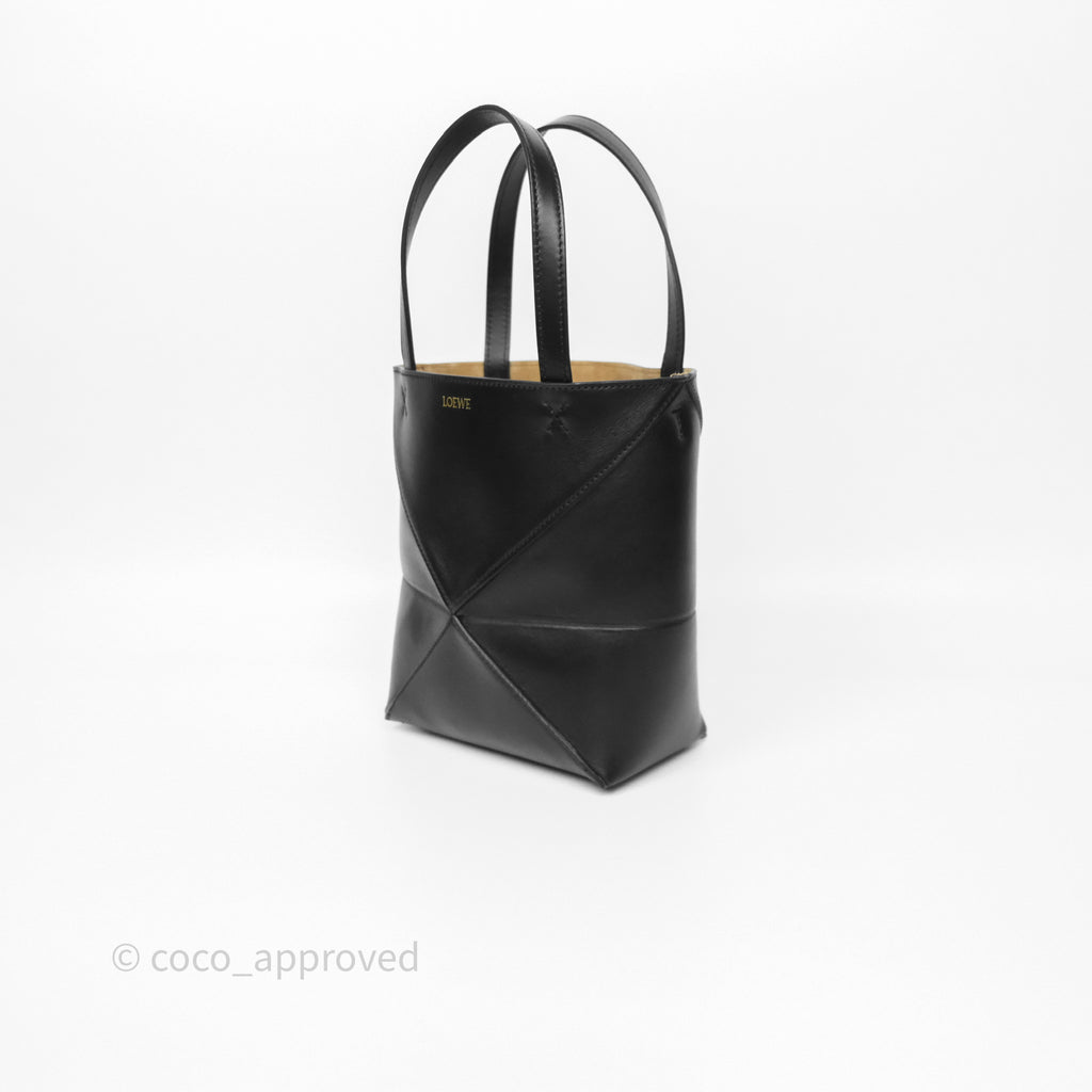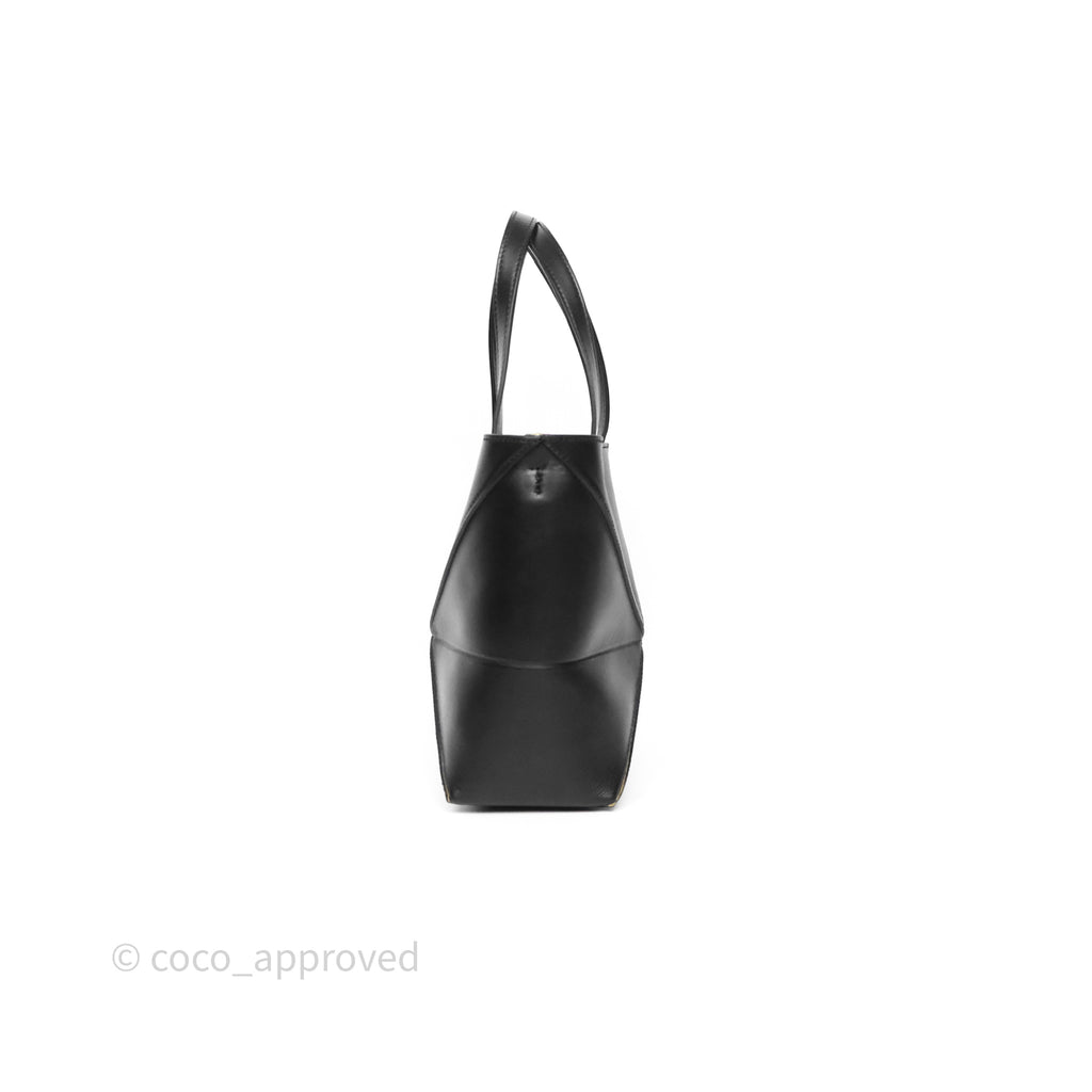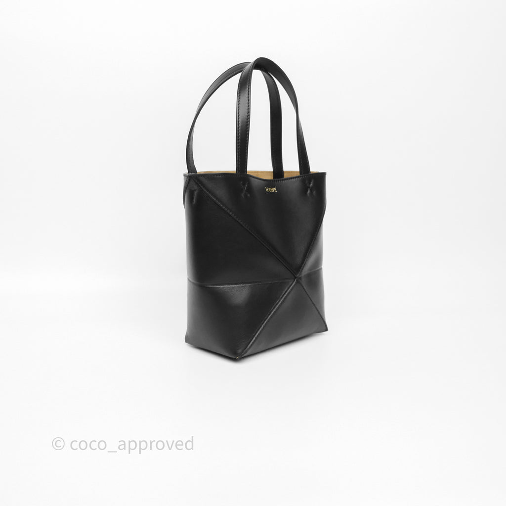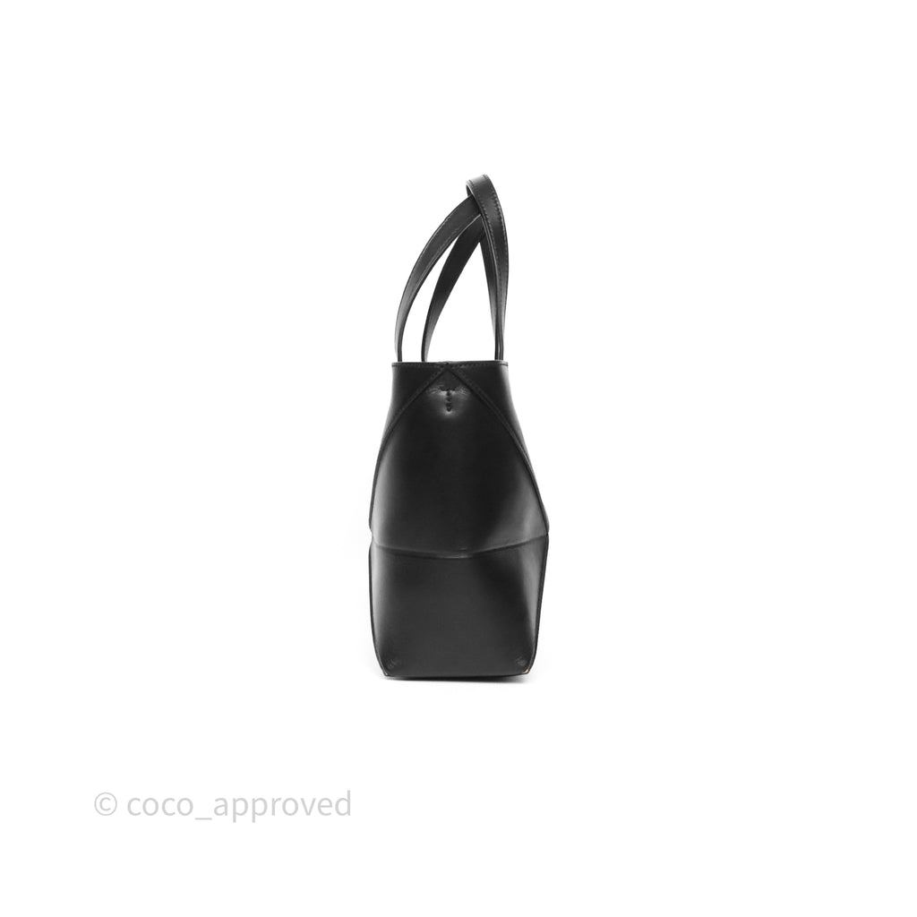 Loewe Mini Puzzle Fold Tote in Shiny Calfskin Black
