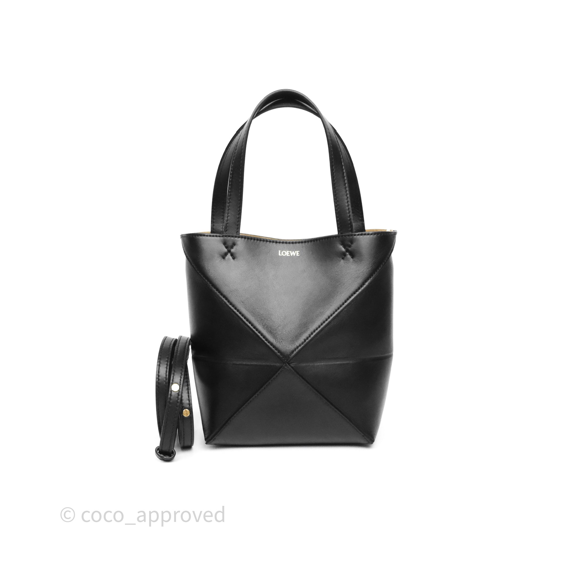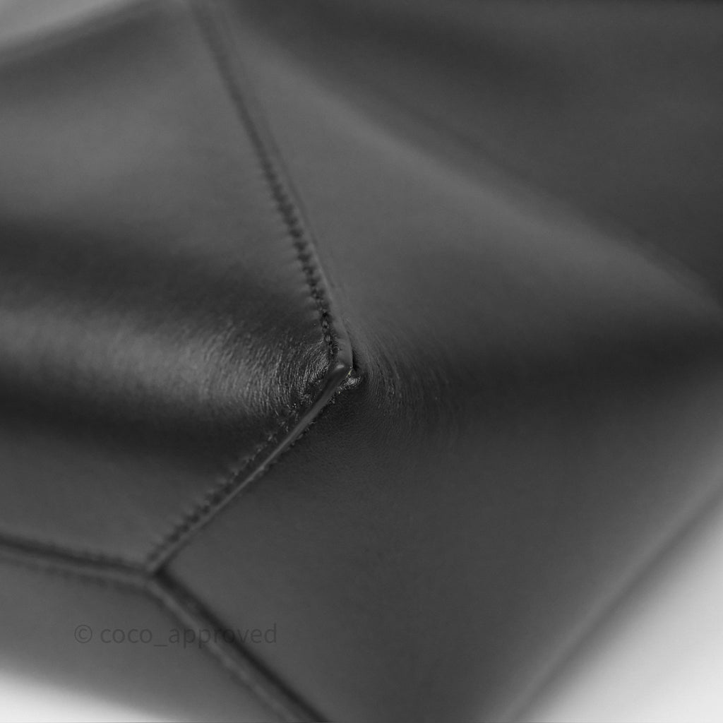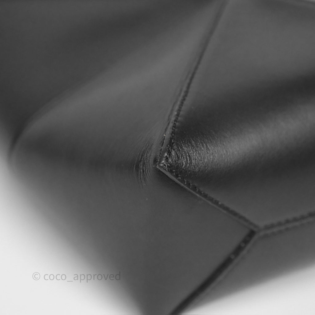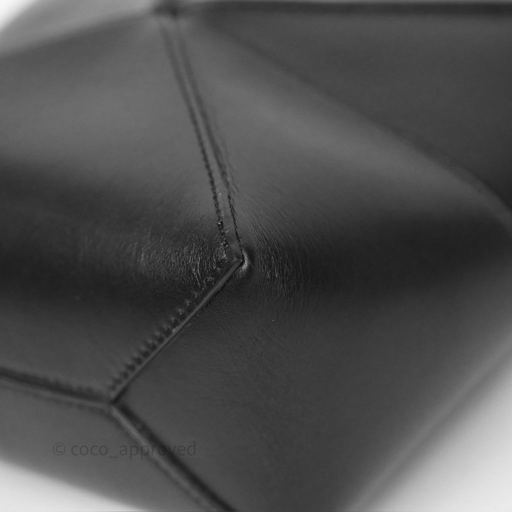 Loewe Mini Puzzle Fold Tote in Shiny Calfskin Black