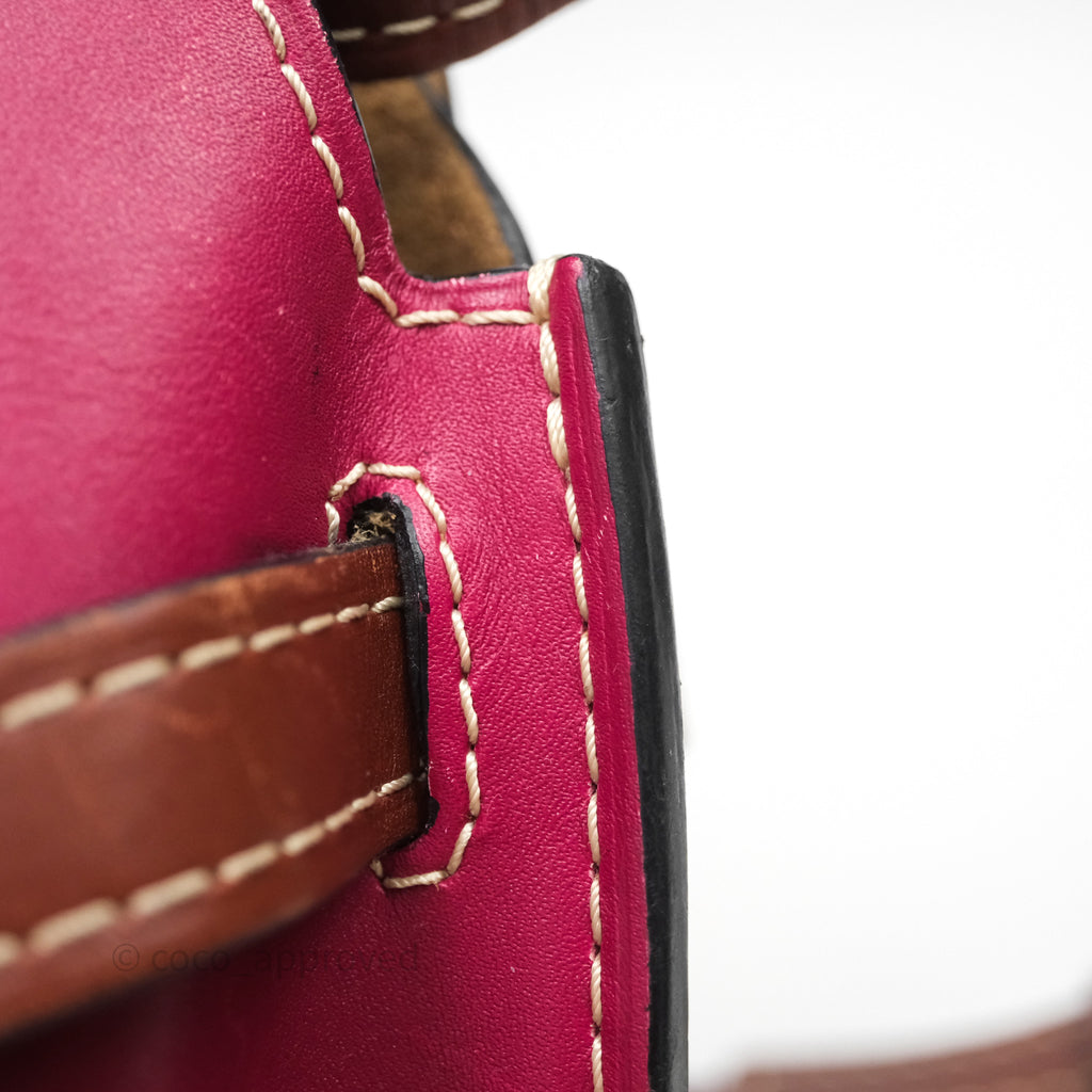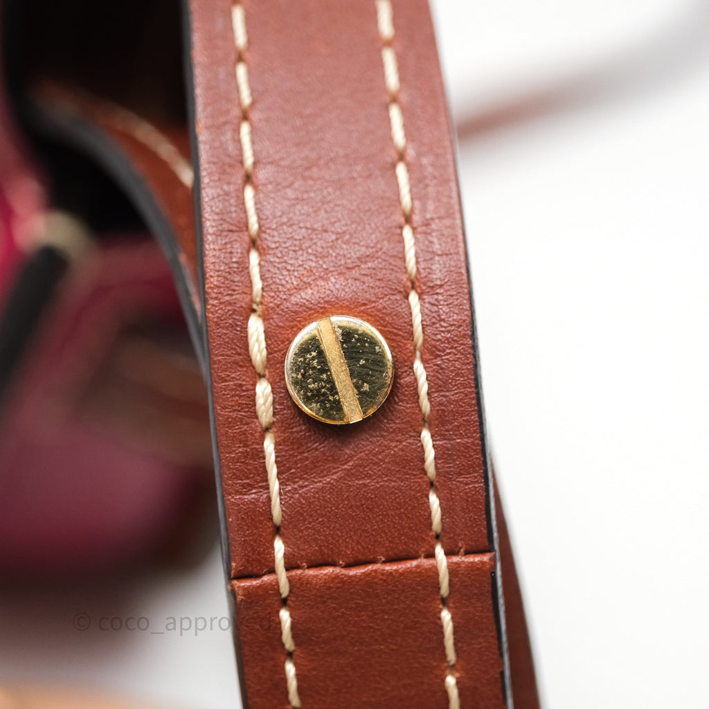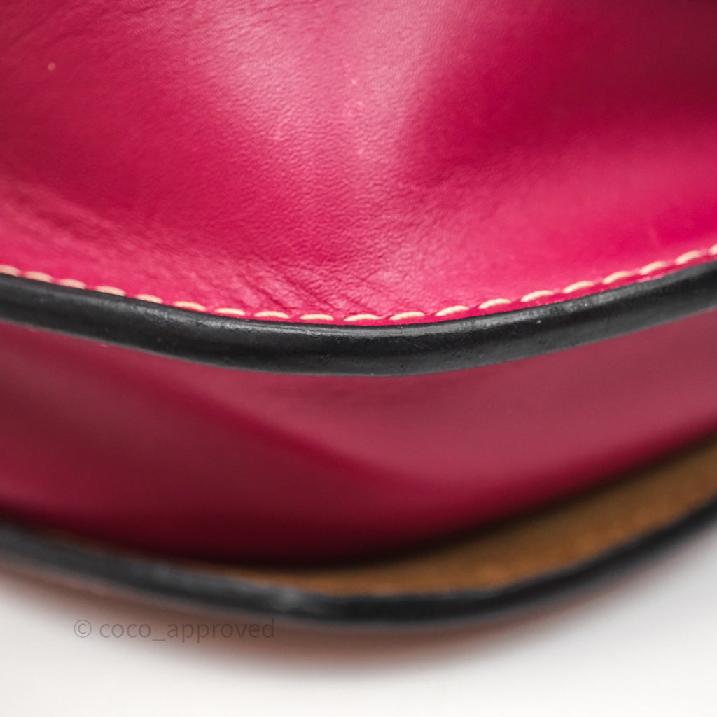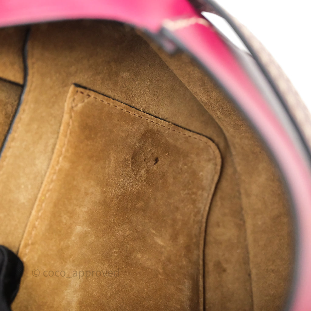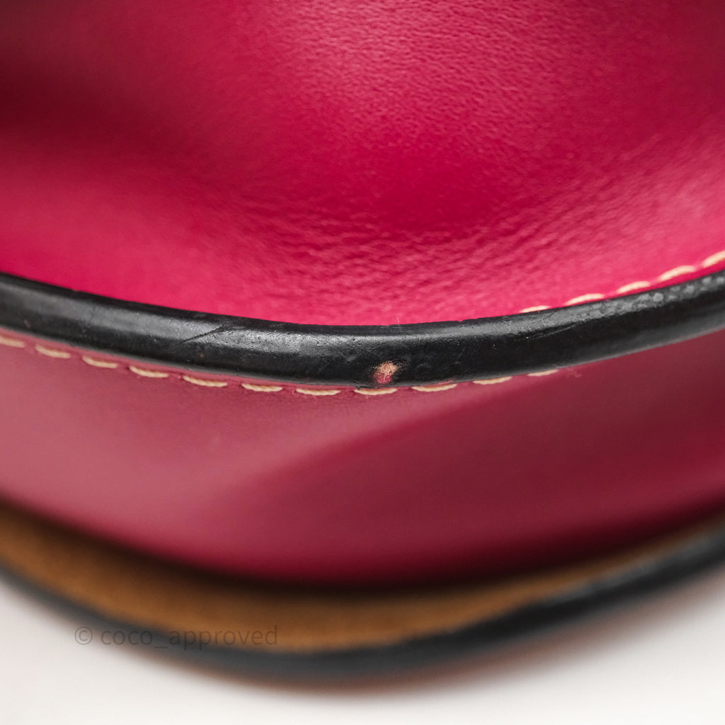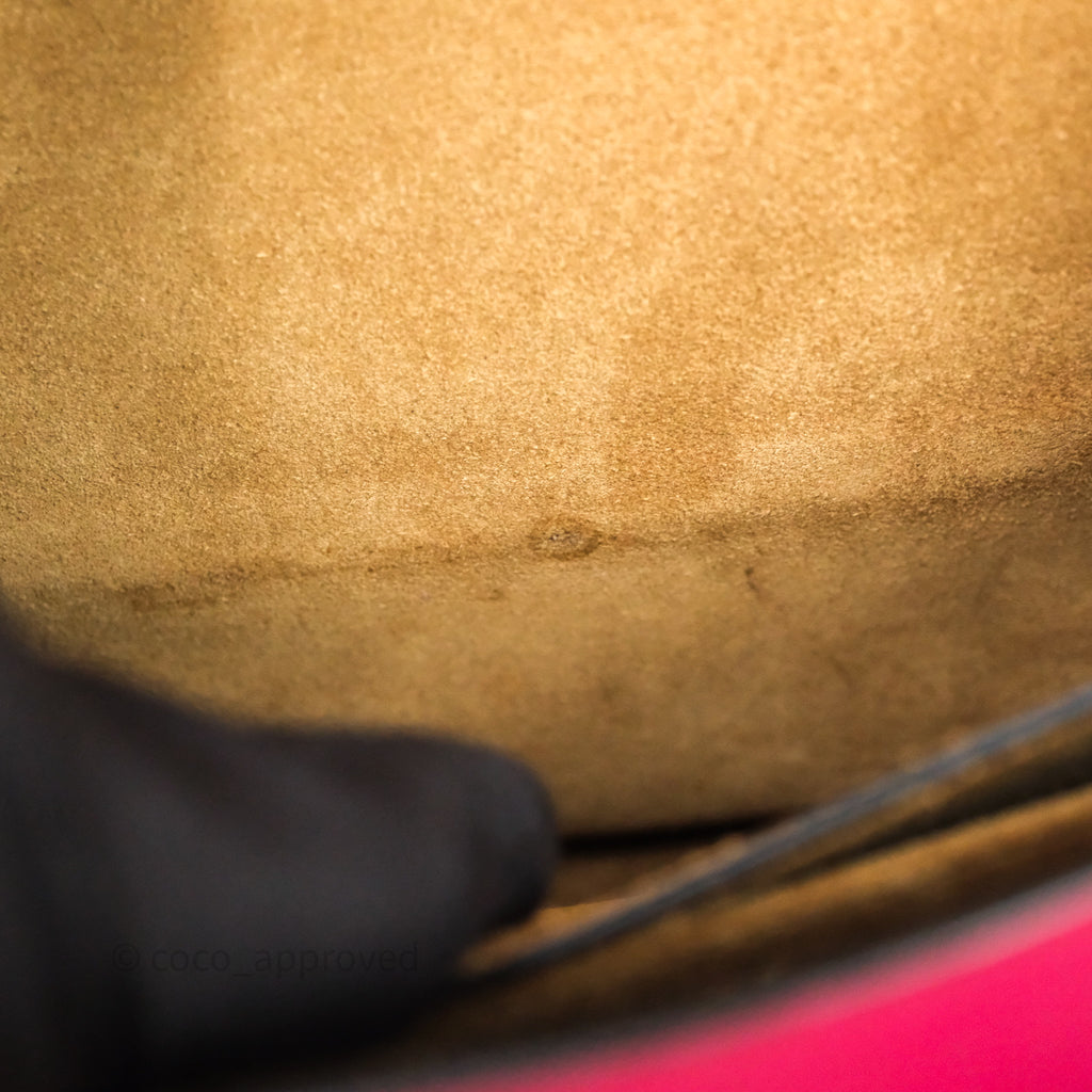 9/10 excellent condition. Hairline and scratches on surface, straps, left and right. Oxidized on hardware. Marks on interior .